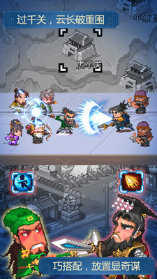 1、自由选择心仪的历史名将,开启一段充满奇遇与挑战的像素三国冒险,无数关卡等你征服。